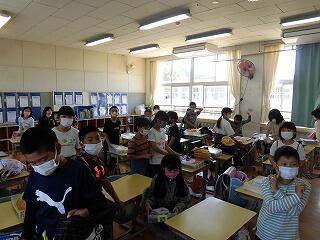 日曜日でしたが、児童は元気に登校し、午前中の授業に参加していました。授業中や休憩時間の児童の様子です。
