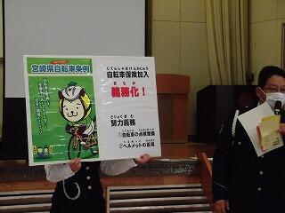 日南警察署交通課職員、交通安全協会の指導員、東郷駐在所在中の警察官(鼓野様)に来ていただきました。