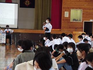 校長先生の講評では、「設定の理由に書かれている通り、正解のない問題に、模索し続けていきましょう。そのためには、みんなの意見や考えや、行動がそろうことが大切です」と言われました。