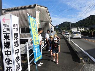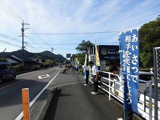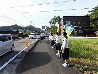 中学校生徒会は、中学校入口付近で、あいさつ運動に取り組んでいます。