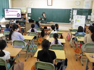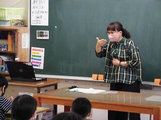 4年生の学級に日南くろしお支援学校の先生がいらっしゃって、出前授業が行われました。