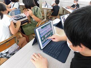 本年度の主題研修(校内研究)のテーマは、「基礎的・基本的な学力の定着を図り、主体的に学ぶ児童・生徒の育成」です。そのような児童・生徒を育成するために、「ICTの効果的な活用と授業改善の実践」に取り組んでいます。