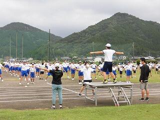 今日は、第1回目の小中合同による全体練習を行いました。早朝から雲行きが怪しく、実施できるか心配でしたが、実施できて安堵したところです。
