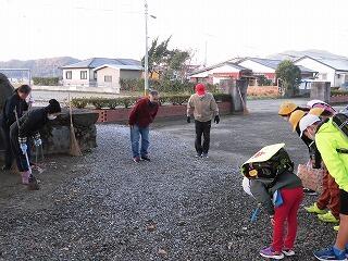 とても寒い朝でしたが、小学校の正門付近の落ち葉清掃を行ってくださりとてもきれいになりました。登校してくる児童の見守り、あいさつの声かけも行ってくださいました。