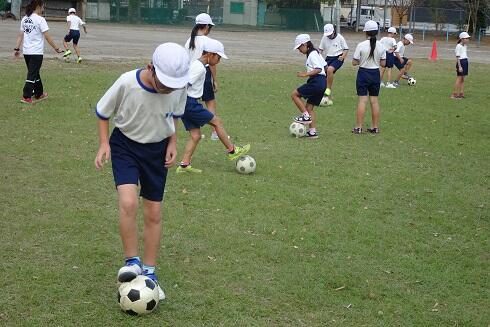 4年生は体育の時間にサッカーを学習しています。