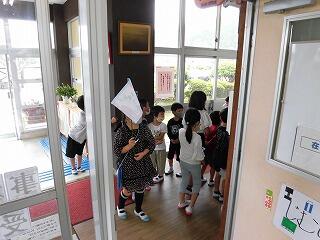 並んで行儀良く、あいさつもしっかりでき、校内を探検して回りました。