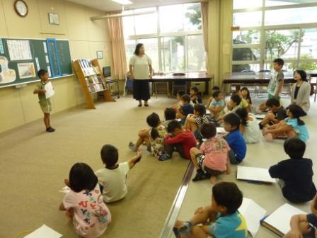 夏休みが明けて最初のG授業でした。夏休みのできごとを、友だちに話したり、友だちの話を聞いて質問や感想を伝え合ったりする学習をしました。