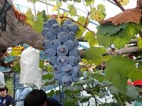 まず、ぶどう畑で興梠浩幸さんに収穫の仕方を指導していただきました。実際にやってみると、高いところにある茎を切るのが難しかったようでしたが、役割分担をして、落とさずに丁寧に収穫することができました。