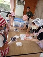 その後は、えのはの里で実際にヤマメを観察しました。年齢によって大きさが違うことや、体の模様があることなど、たくさんの発見がありました。
