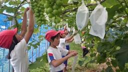 4年G 袋かけ、販売練習 投稿日時 : 2015/07/06 GKSV カテゴリ:4年G授業 7月6日は、ぶどうの袋かけ作業をしました。4年生全員で300袋以上の袋をかけました。児童は、2週間ぶりにブドウを見て、つぶが大きくなった事に気づき、うれしそうにしていました。袋かけを終えて、「首がいたい」「腕が疲れた」と多くの児童が口にしていました。生産者の苦労を感じ、五ヶ瀬を語る上で貴重な経験をすることができました。 上組小に戻ってからは、収穫したブドウのおいしさを語りながら、販売するための練習をしました。児童にとって、販売活動は、初めてなので、はじめは、上手に話をすることができませんでしたが、これから各学校で練習をしていきます。 0 {{options.likeCount}} {{options.likeCount}}