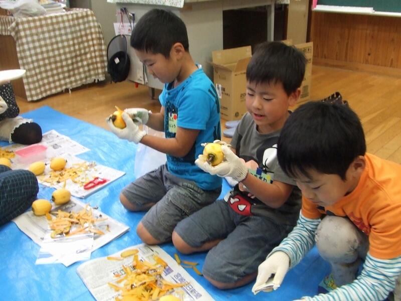 干し柿作り 投稿日時 : 2015/11/12 GKSV カテゴリ:1年G授業 11月12日、1年生は生活科で干し柿作りをしました。今日は、地域の方をお招きし、渋柿を美味しく変身させる「干し柿作り」を教えていただきました。子どもたちは柿の皮をむき、たこ糸に吊し、焼酎につける作業を楽しそうに進めていました。 活動後、どのようなお世話をしていけばよいかなどをたくさん質問し、各学校に干し柿を持ち帰りました。 美味しい干し柿が出来上がるのを、1年生みんなが楽しみにしています。 0 {{options.likeCount}} {{options.likeCount}}