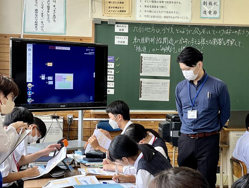 その後、事後研究会にて、県内の様々な先生から多くのご意見・ご質問をいただき、研究を深めることができました。ご意見の中で、「九州大会の授業をとーーーっても期待しています」と大変励みになるような発言もありました。