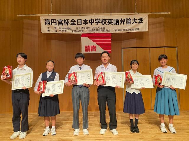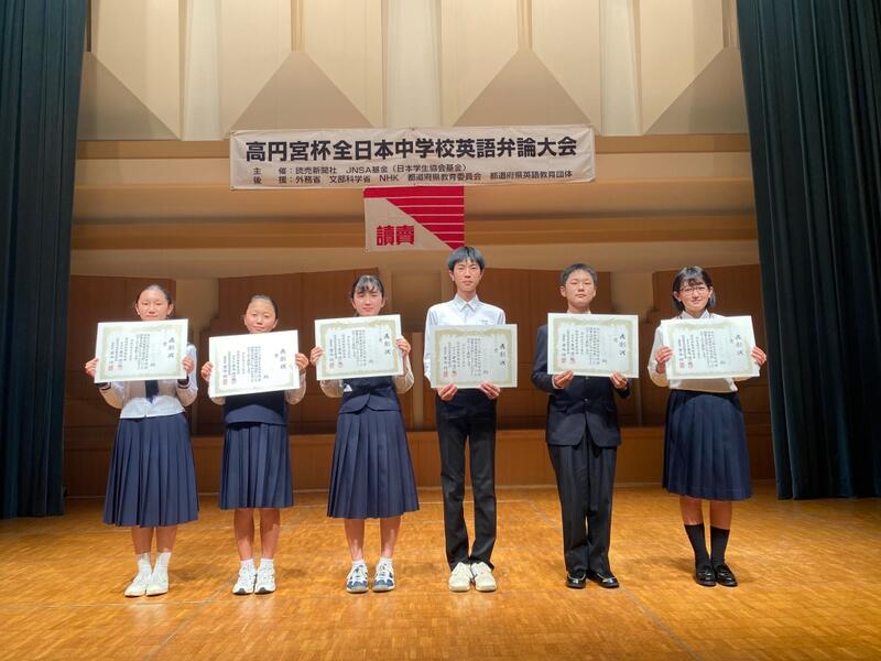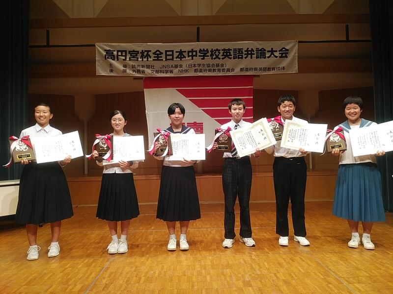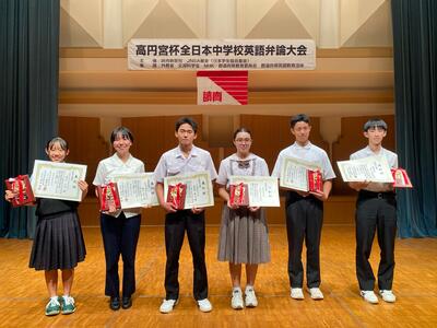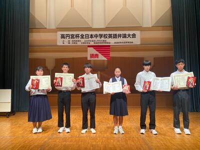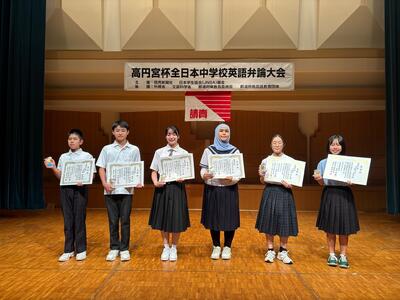 弁論の部上位3名は、高円宮杯第69回全日本中学校英語弁論大会に出場します。