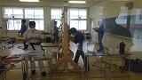 本来の「大会」ならば、4Kビデオカメラやカメラスイッチング、マイクといった立派な機材も準備して行うべきなのでしょうが、今回の大会の第一はコロナ禍にもかかわらず一生懸命製作した生徒作品の披露の場の提供と4校でそれが共有できればよいという指導者の先生方の知恵と工夫の手作り大会であることは、この様子でうかがえるかと思います。