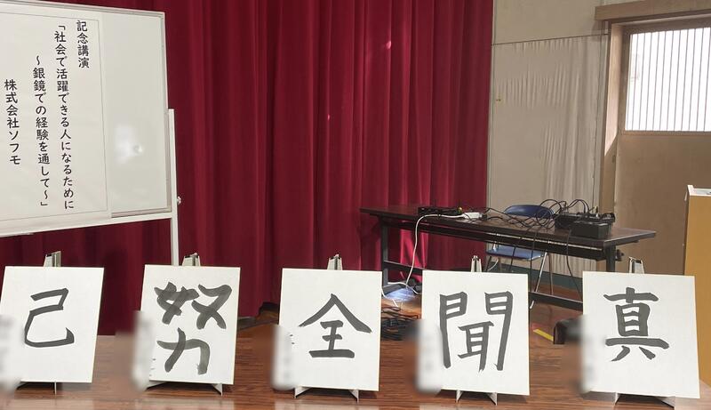 銀鏡中学校で2年生5名の立志式が開催され、卒業生が講演を行いました