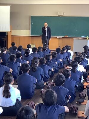 延岡市立土々呂中学校1年生 「連続7回よのなか教室」 で講話