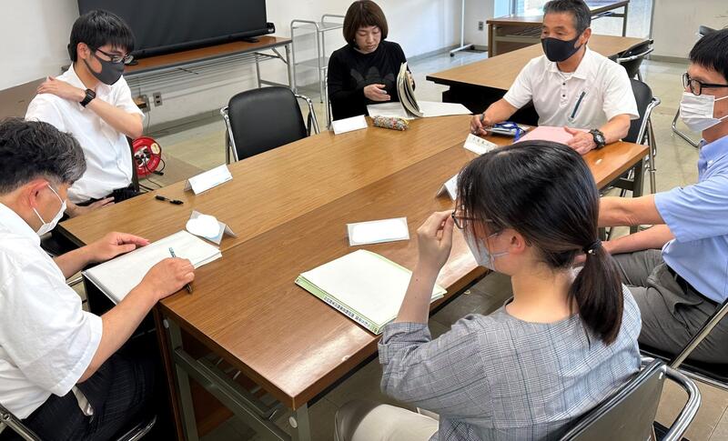 後半は共同学校事務室長を交えてグループトークが行われました。日頃の業務についての疑問点や困り事を新任者同士で共有し、室長から改善策やアドバイスを受ける等、熱心な意見が交わされ、充実した研修会となりました。
