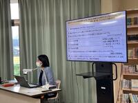 研修では、「読書活動推進事業」推進指定校である、えびの市立上江小中学校の上野先生(図書担当事務)、甲斐先生、野中先生が実践発表を行いました。実践発表後には、「教科等における学校図書館の効果的な活用の在り方について」をテーマに協議を行いました。実践発表の内容や各学校の実態等を踏まえ、「もう少し協議の時間がほしかった」と感想が出るほど、先生方の熱心な協議が行われました。