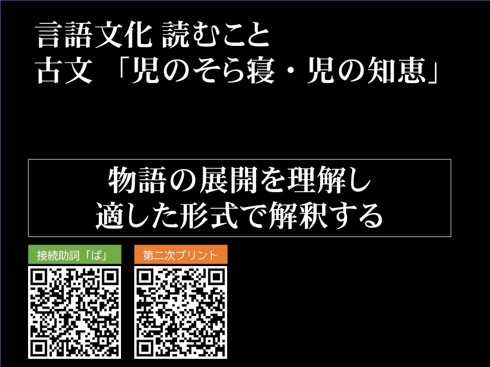 | タイトル | 言語文化 読むこと 説話 児のそら寝 児の知恵 |