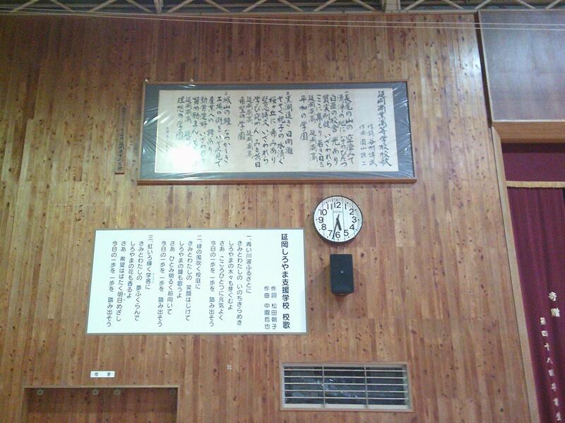 4月の開校を控え、延岡商業高校の体育館に、本校の校歌の歌詞が設置されました(延岡しろやま支援学校の校歌と同じものです)。